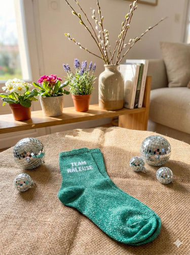 Aperçu rapide Chaussettes à paillettes femme €10,00 /Joyeuse RetraiteBelle et RebelleReine des emmerdesDisponible en 3 couleurs5 en stock