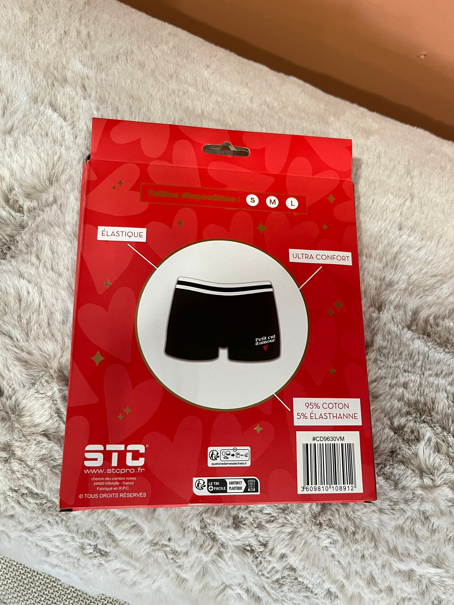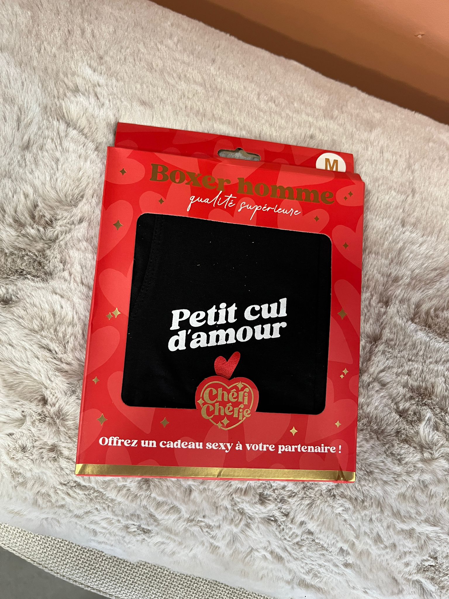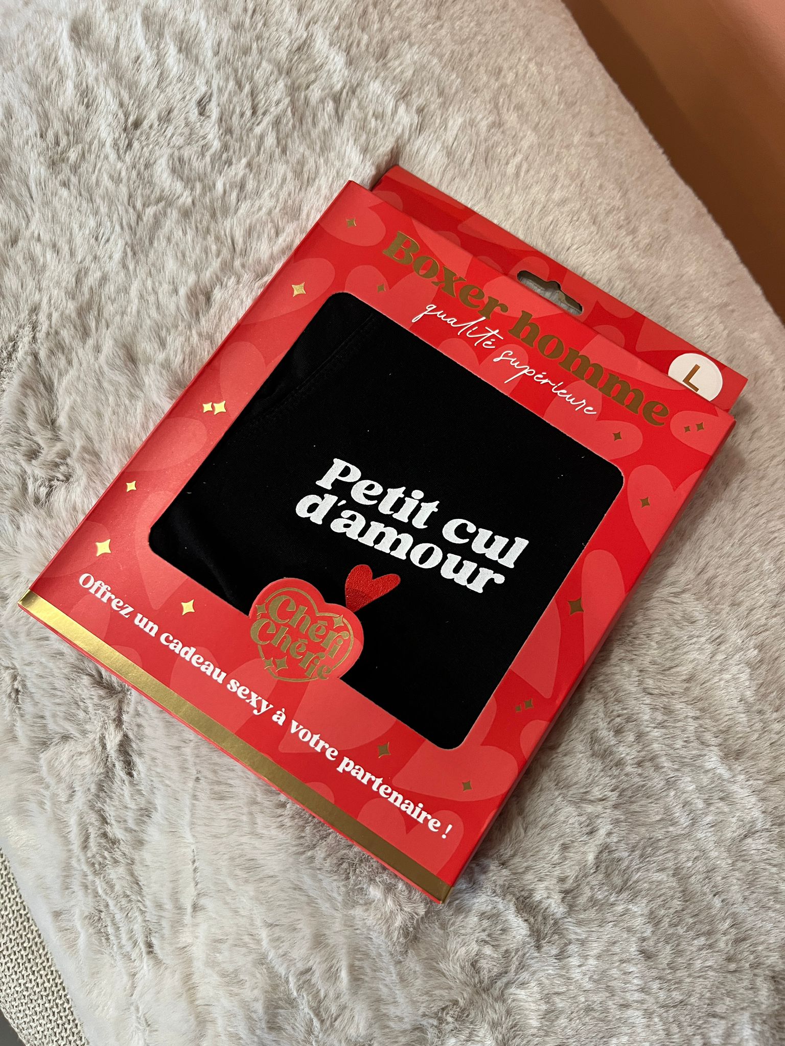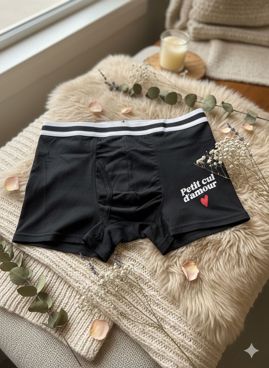 Ce boxer est la preuve qu’on peut allier humour et affection. Avec son message « Petit cul d’amour », il transforme un basique du quotidien en déclaration drôle et attendrissante.