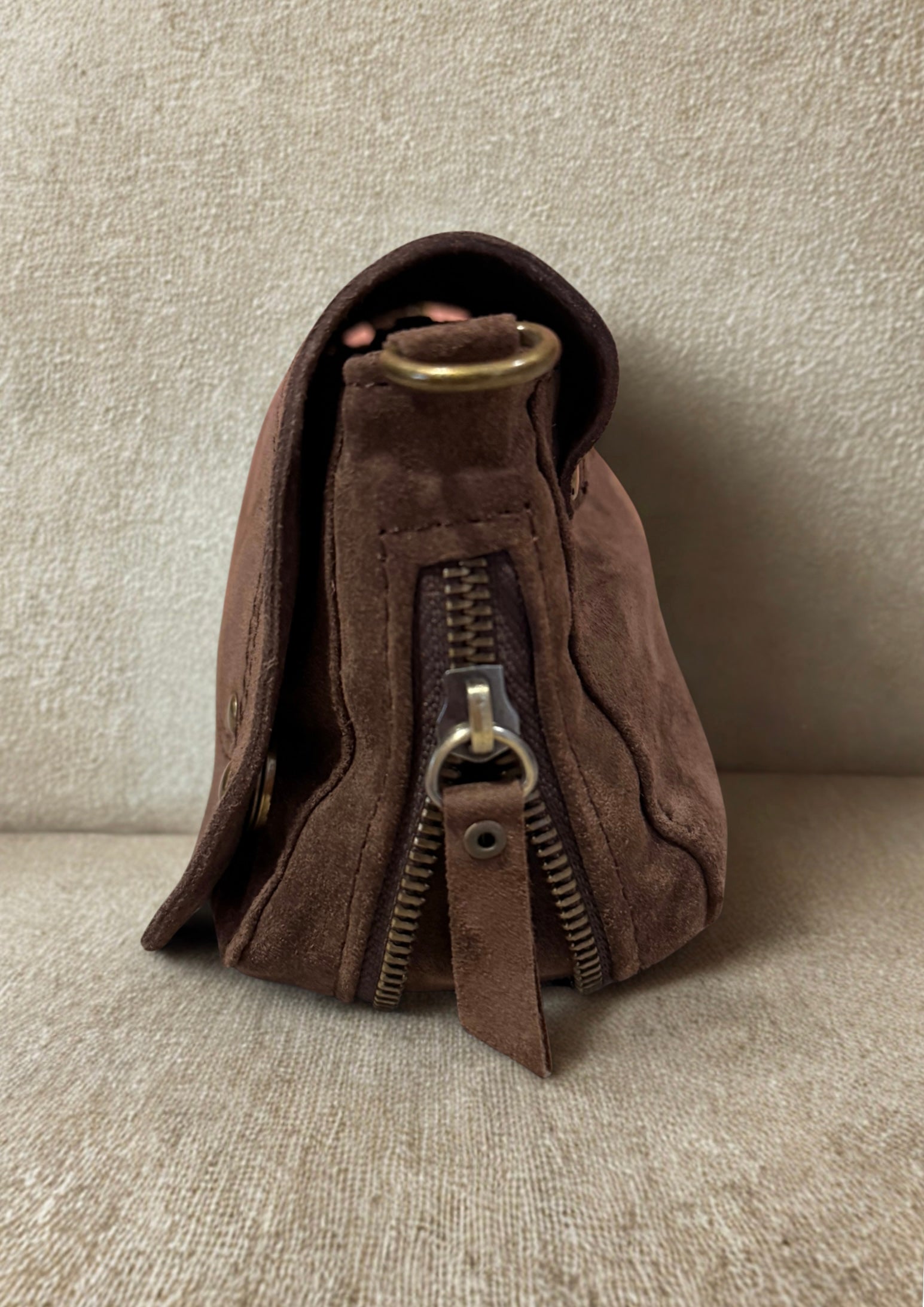 Le sac drey est un modèle ingénieux qui allie élégance, praticité et modularité. Réalisé en cuir véritable effet suédé, il séduit par son toucher doux et sa couleur chocolat chaleureuse.