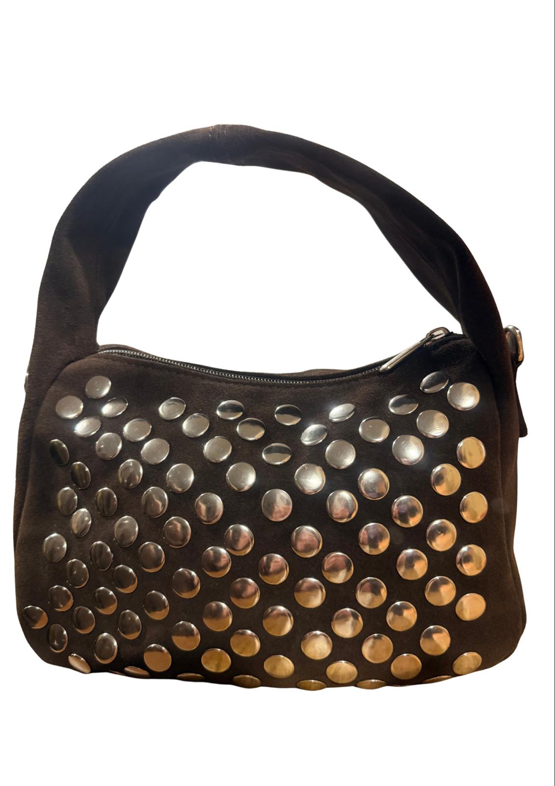 Un petit sac qui fait toute la différence : ultra souple, 100 % cuir, et sublimé d’un devant entièrement orné de gros clous métalliques. Un accessoire tendance qui apporte instantanément du style à n’importe quelle tenue, du jean au manteau chic. Léger, pratique et avec une belle tenue, c’est le mini sac parfait pour votre dressing d’hiver.