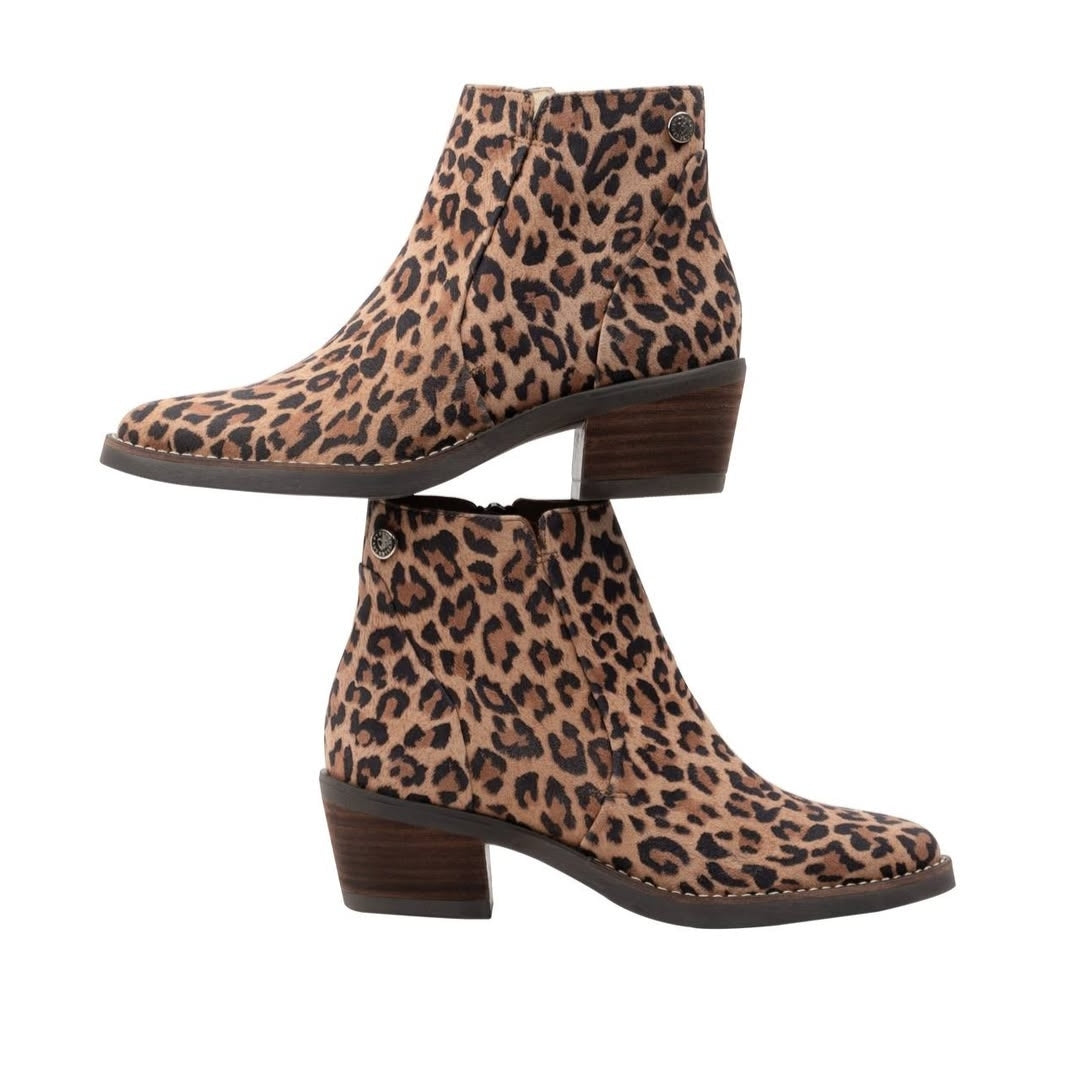 Avec un talon couleur bois foncé pour les Romy cuir python noir et nubuck léopard facile à porter en toute occasion avec le zip latéral pour plus de facilité.