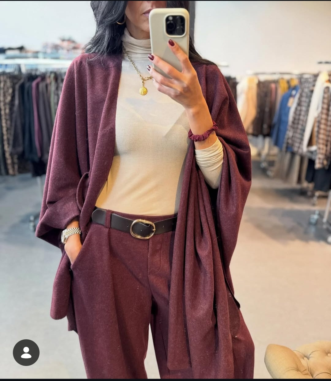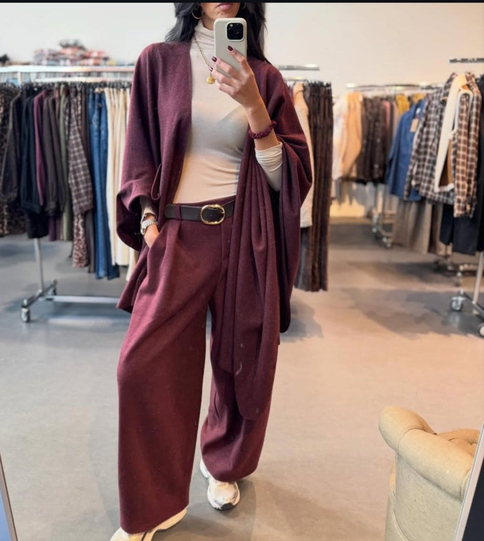 On adore sa matière chaleureuse, sa tombée parfaite et sa ceinture assortie qui structure la silhouette tout en restant confortable.