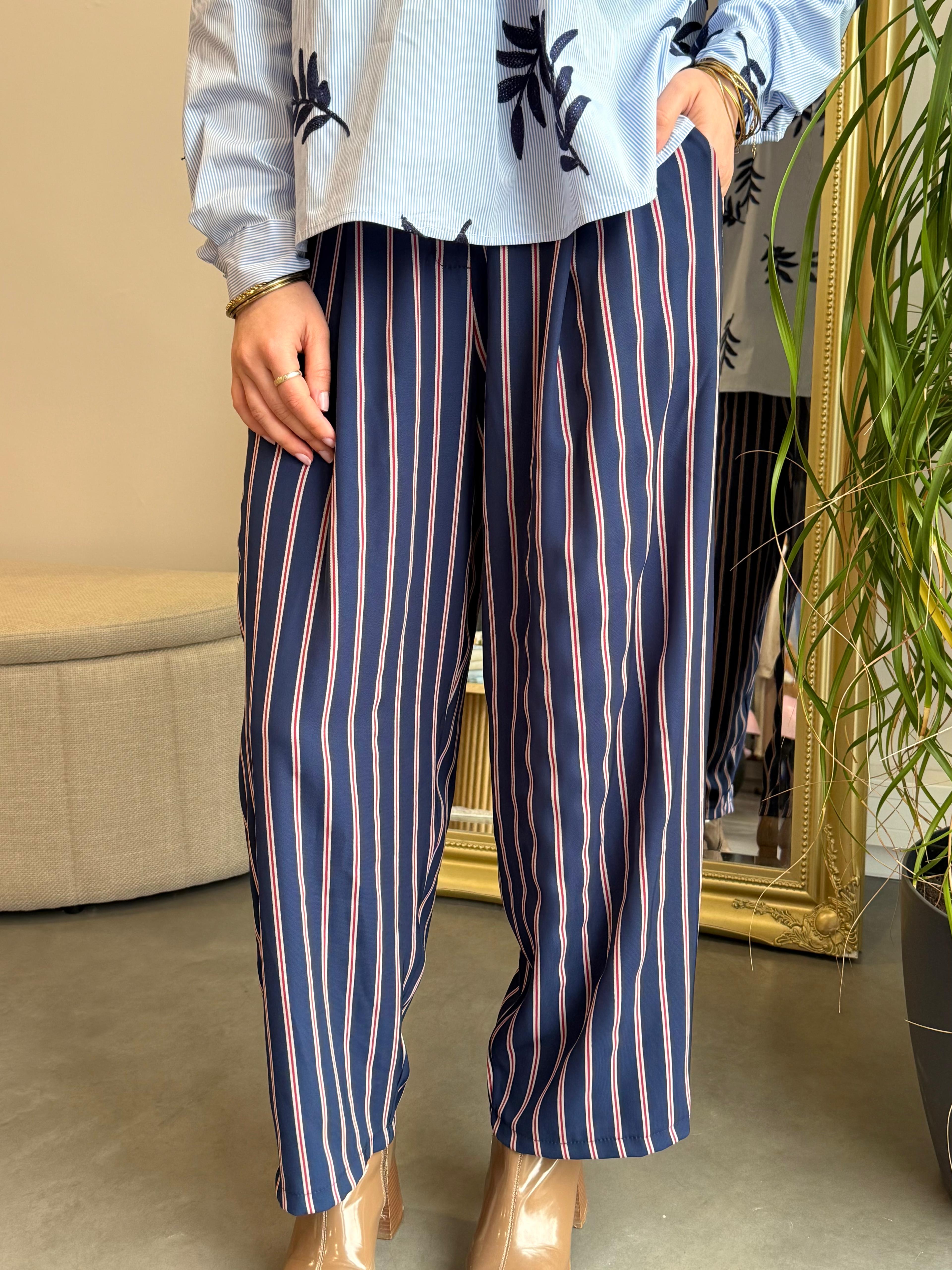 Pantalon fluide rayé marine Johanna Paris