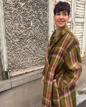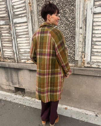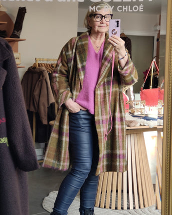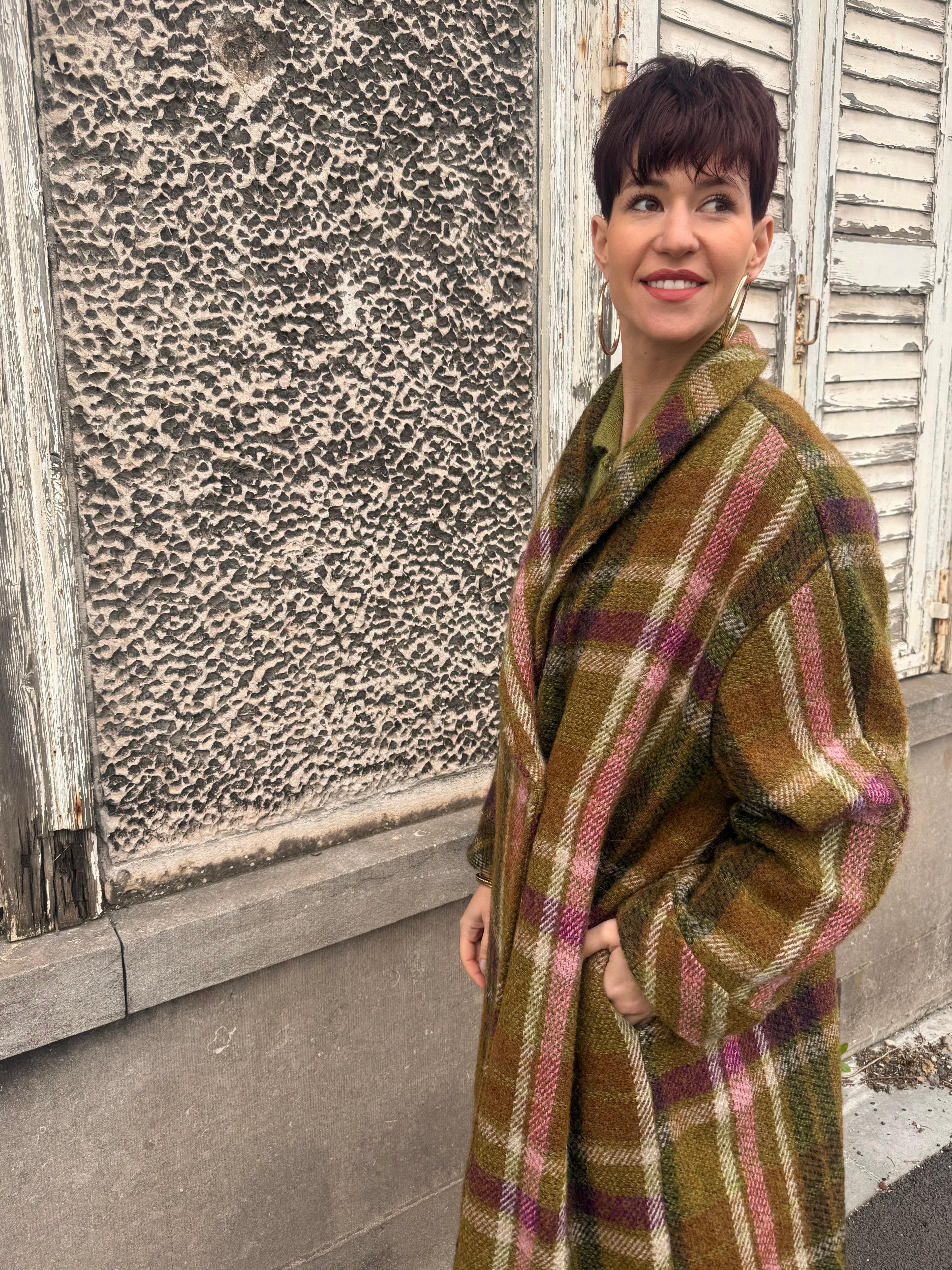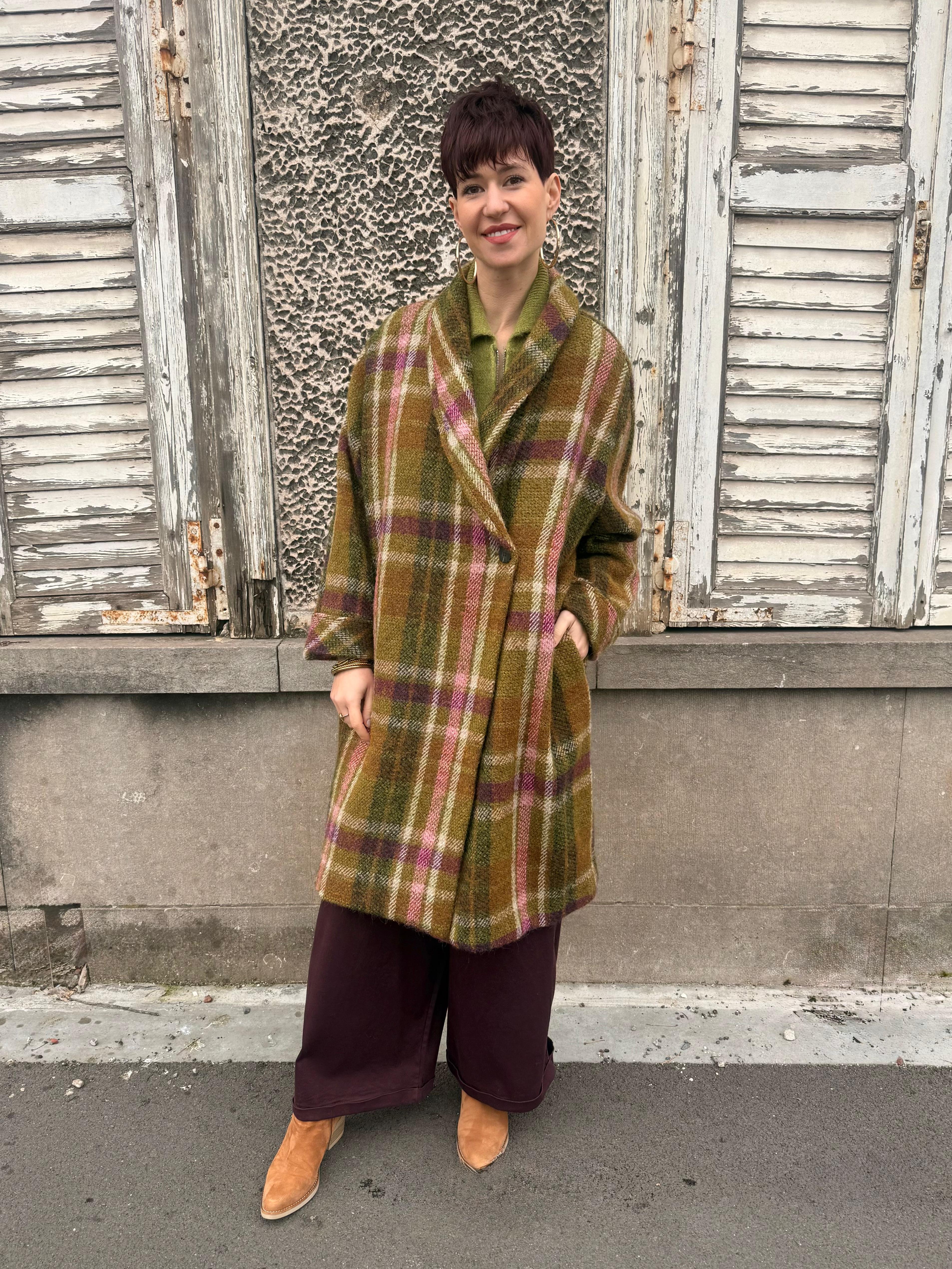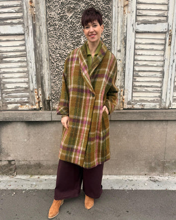 Inspiré des tendances automne-hiver, ce manteau à carreaux signé Johanna Paris apporte style et chaleur à toutes les silhouettes.