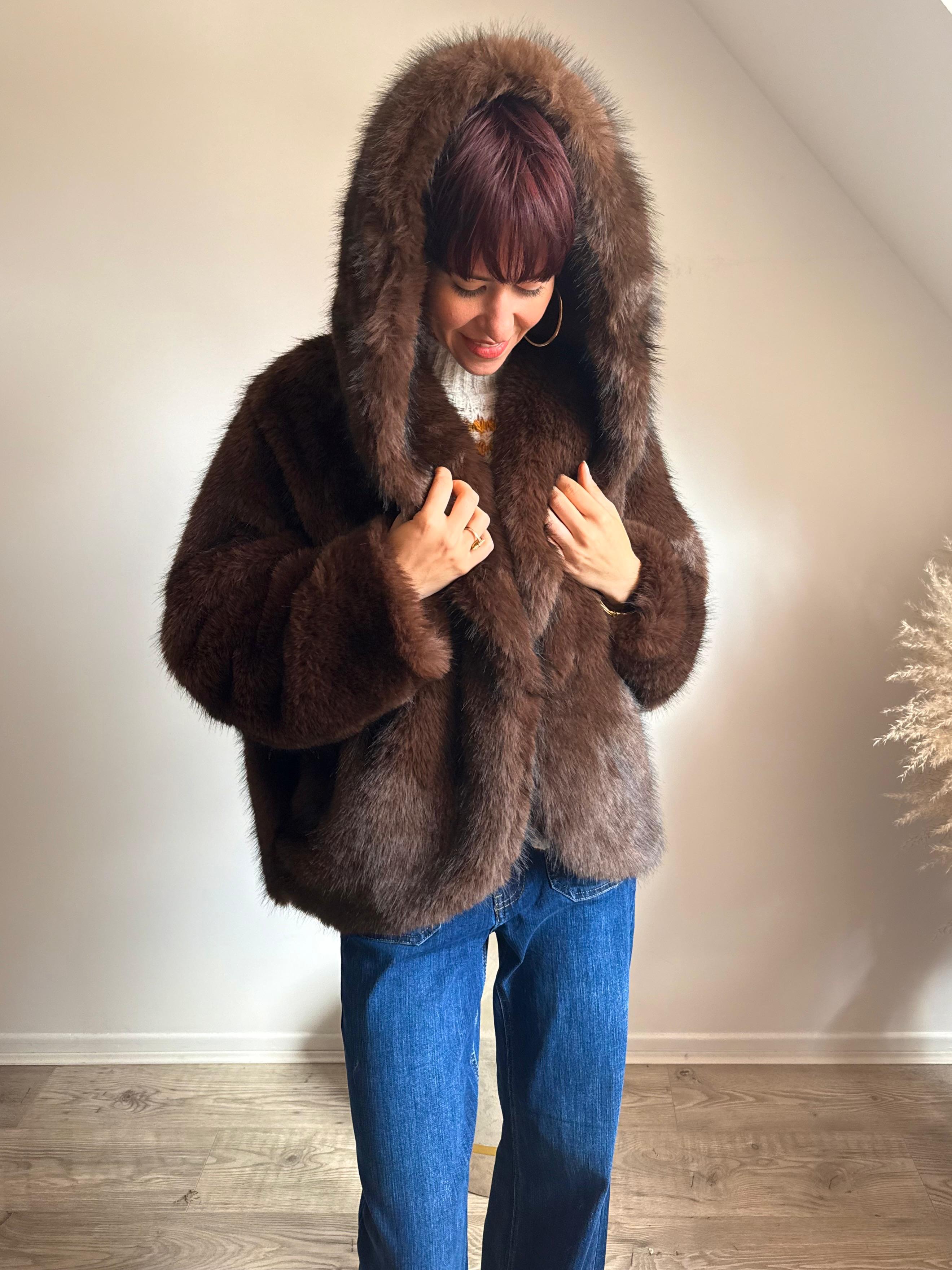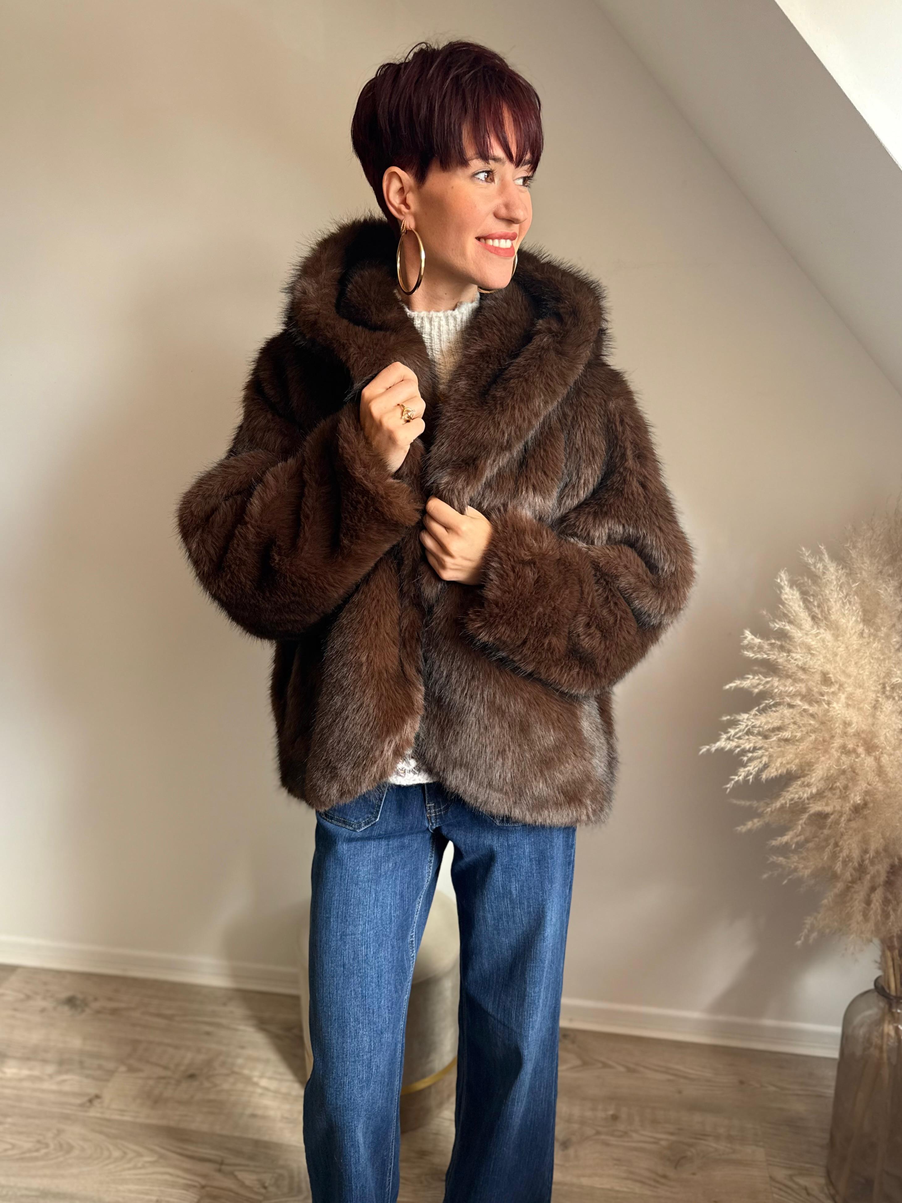 Veste fourrure capuche chocolat - The Corner