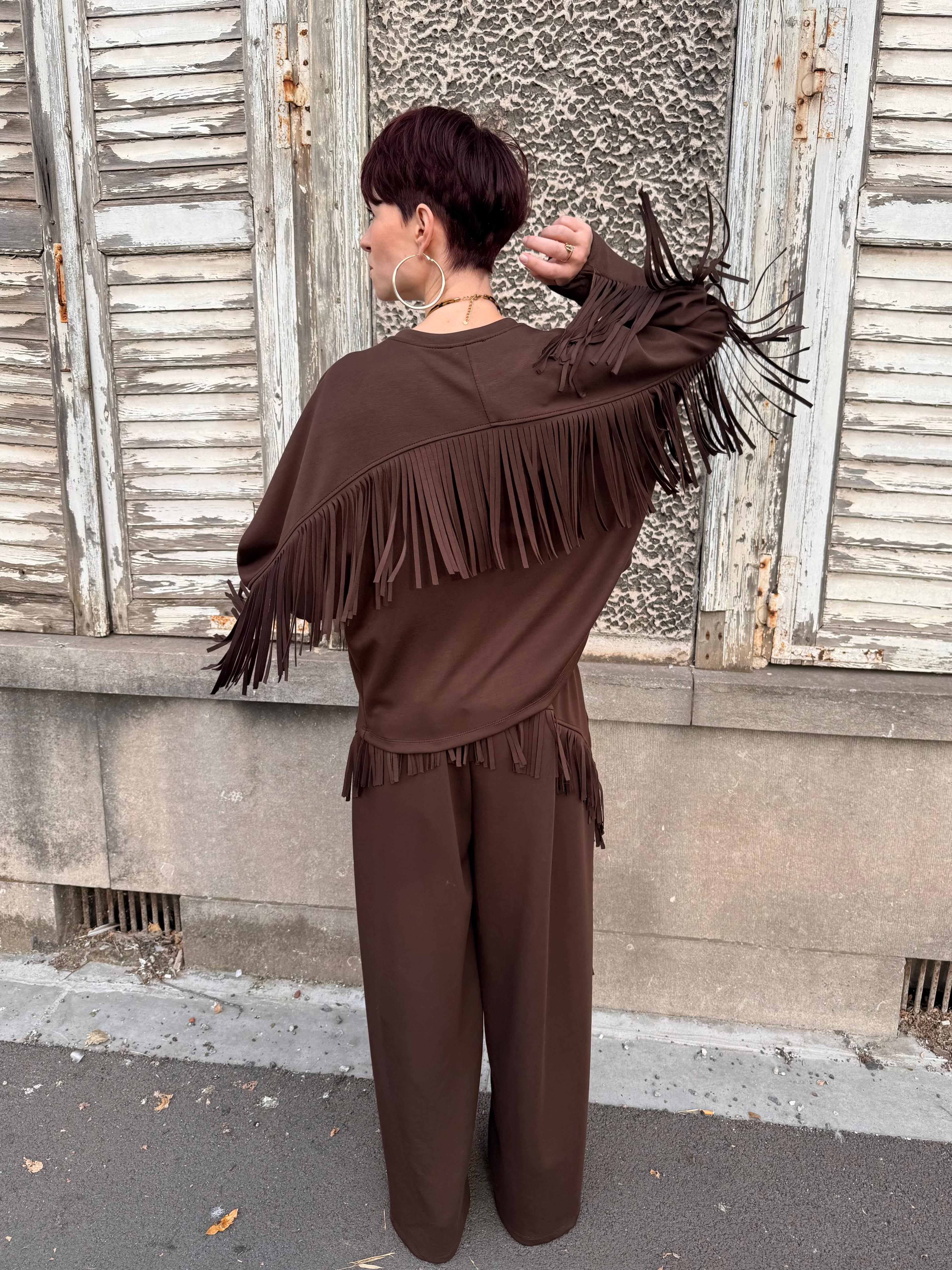 - Ensemble 2 pièces : sweat oversize à franges + pantalon fluide à taille élastique