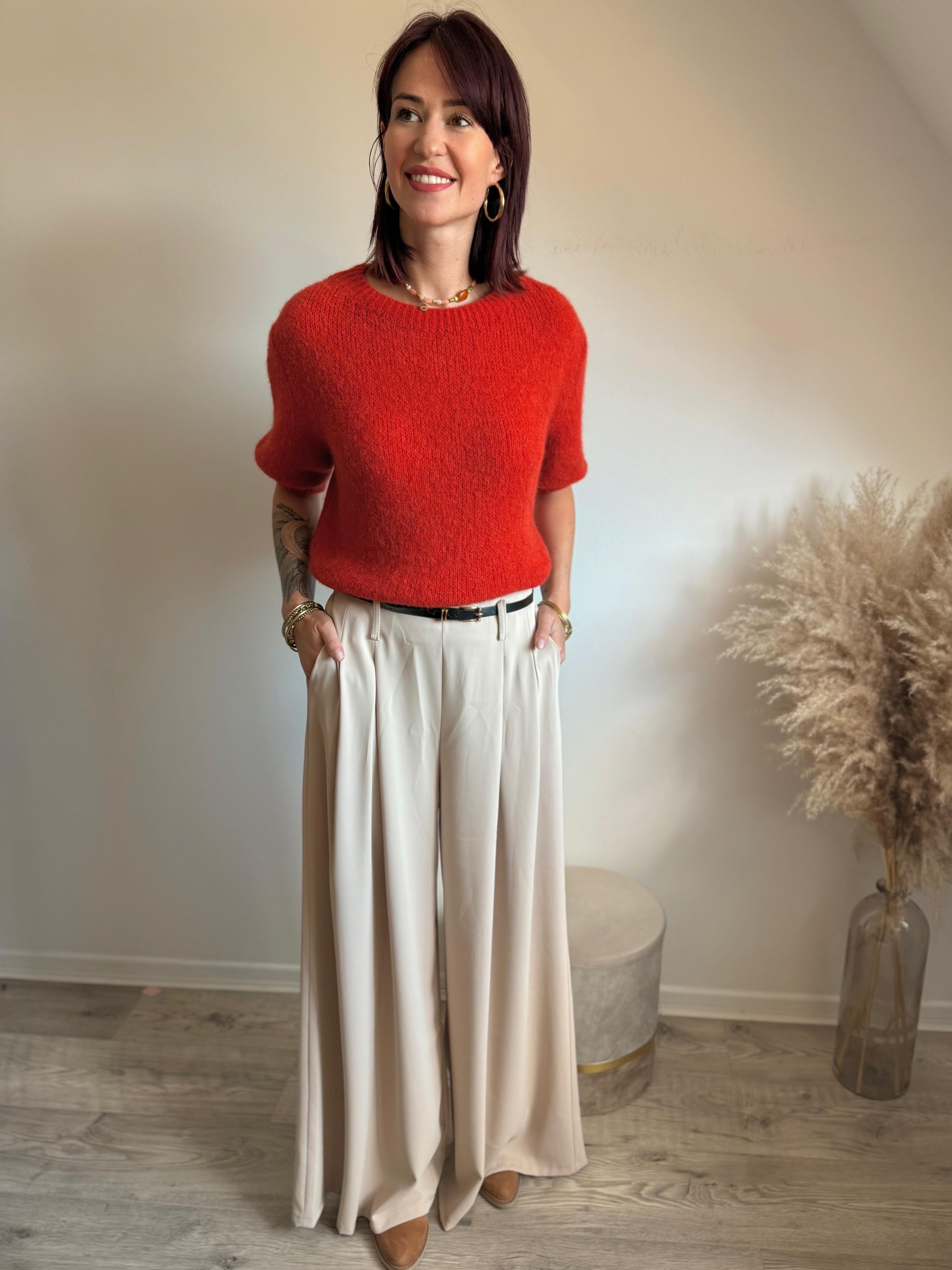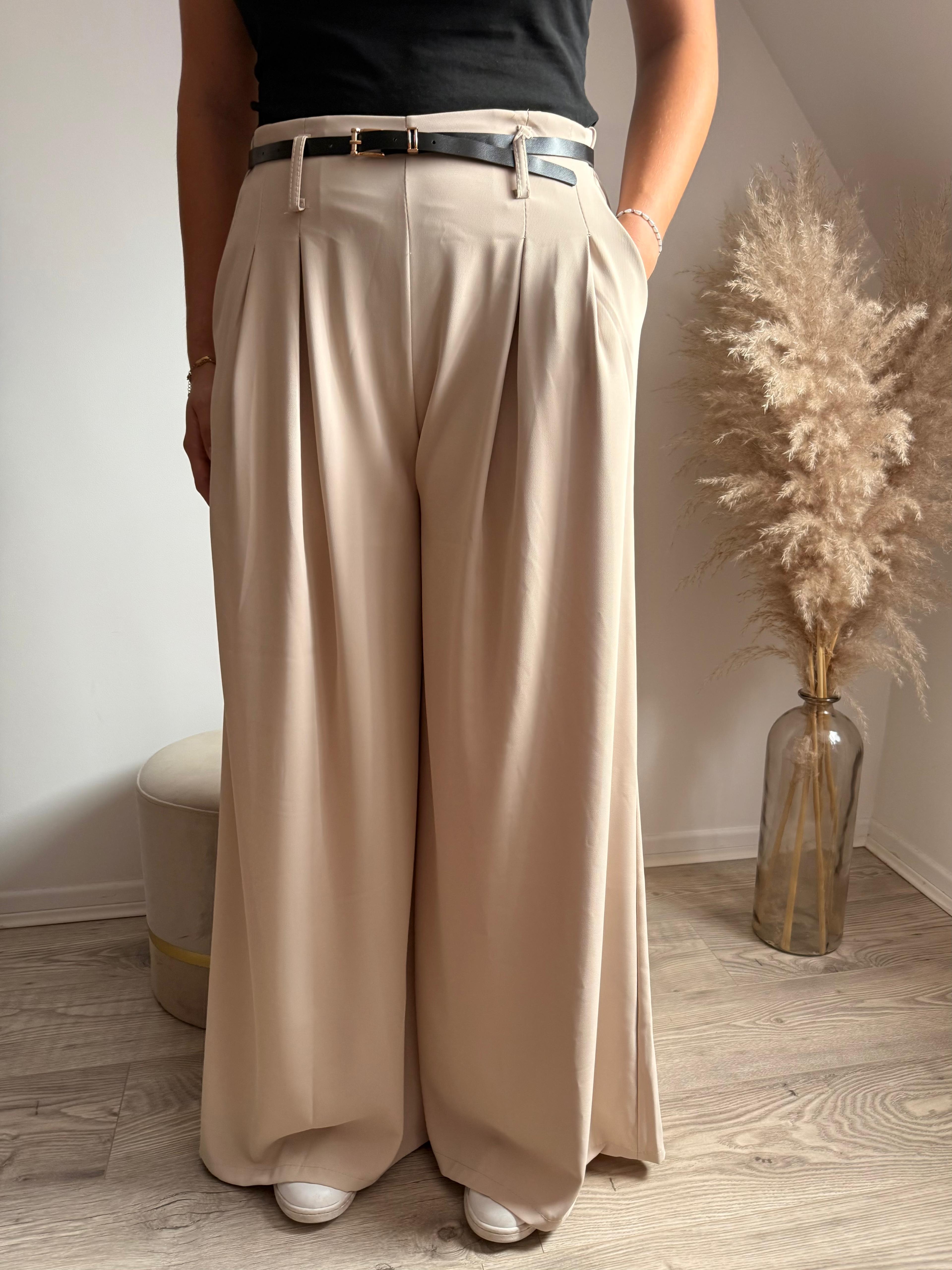 Conçu dans une matière légère et aérienne, il offre un tombé impeccable et un confort absolu tout au long de la journée. Sa coupe taille haute met en valeur la silhouette, tandis que sa petite ceinture fine souligne délicatement la taille.