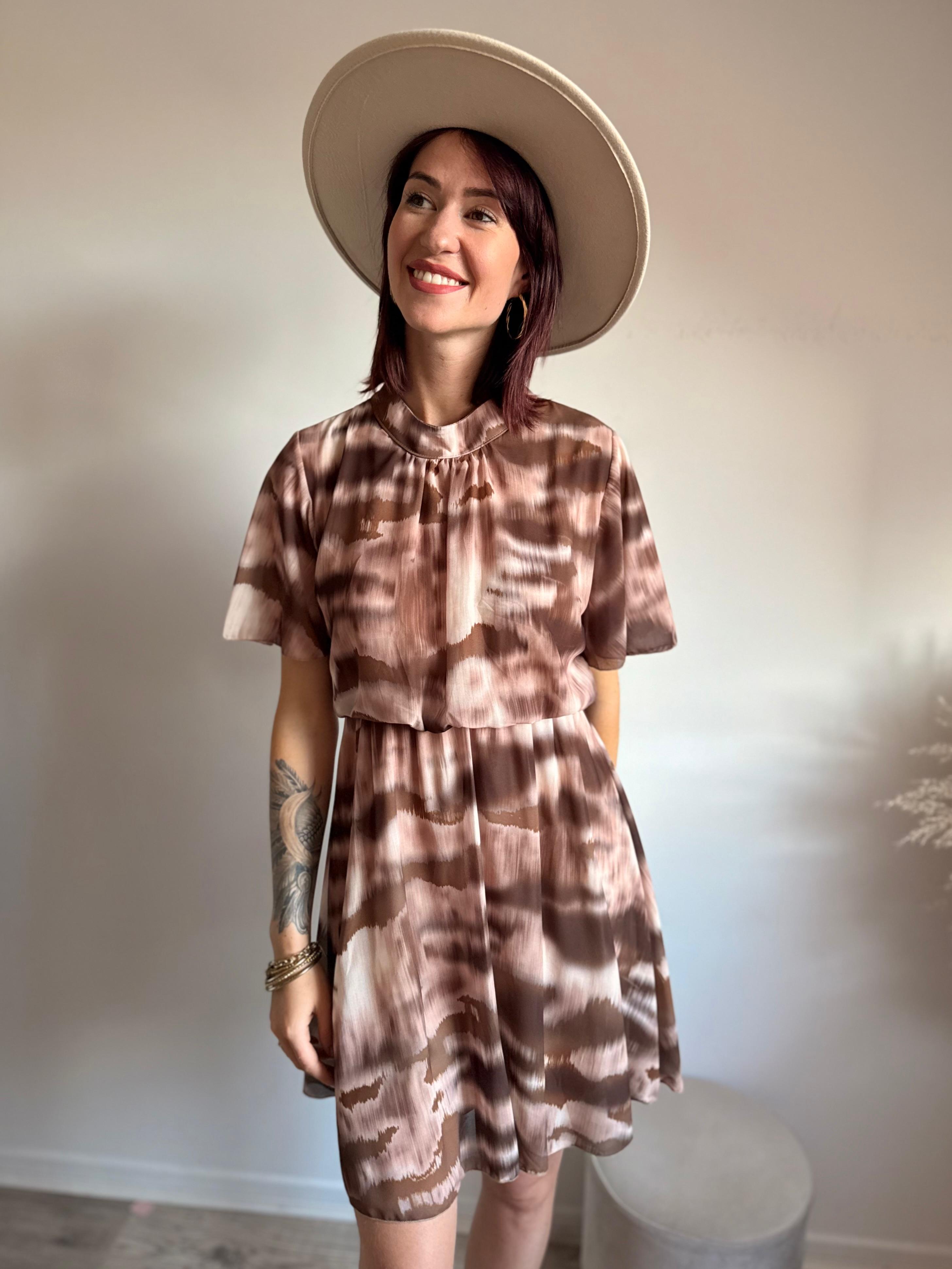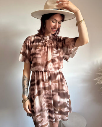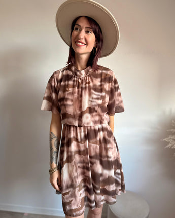 Imprimé : nuances de marron et beige effet aquarelle, très tendance