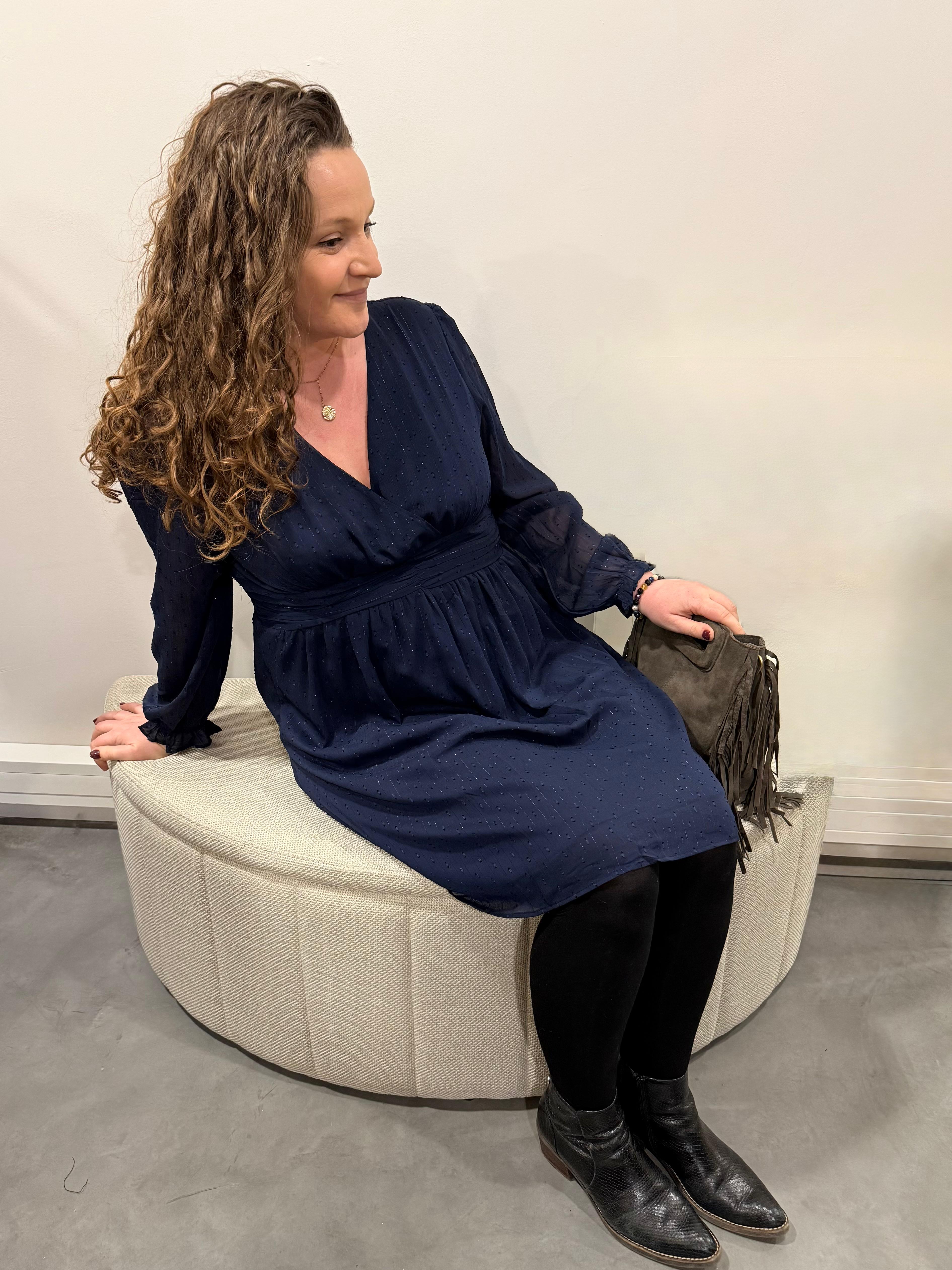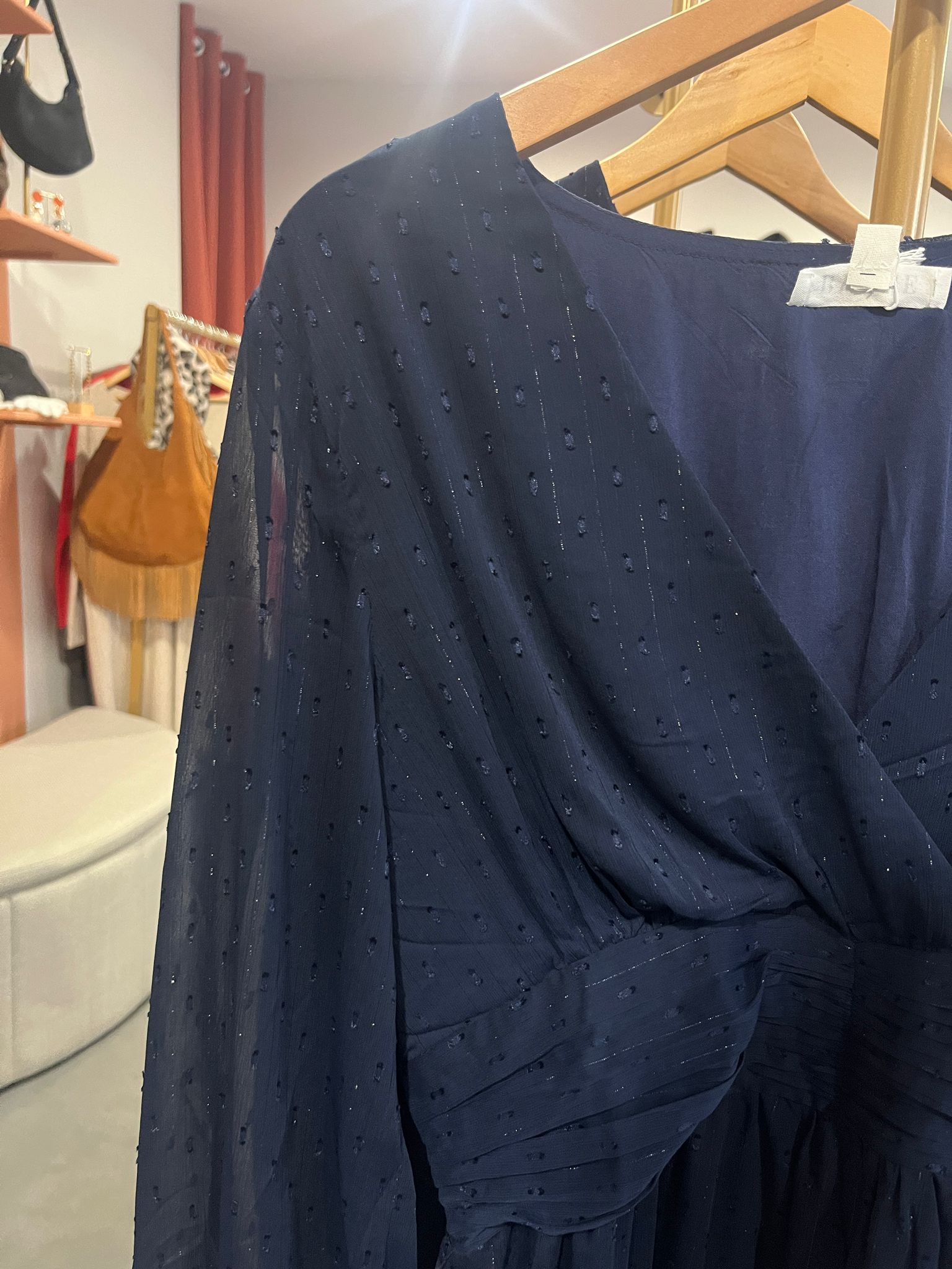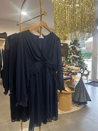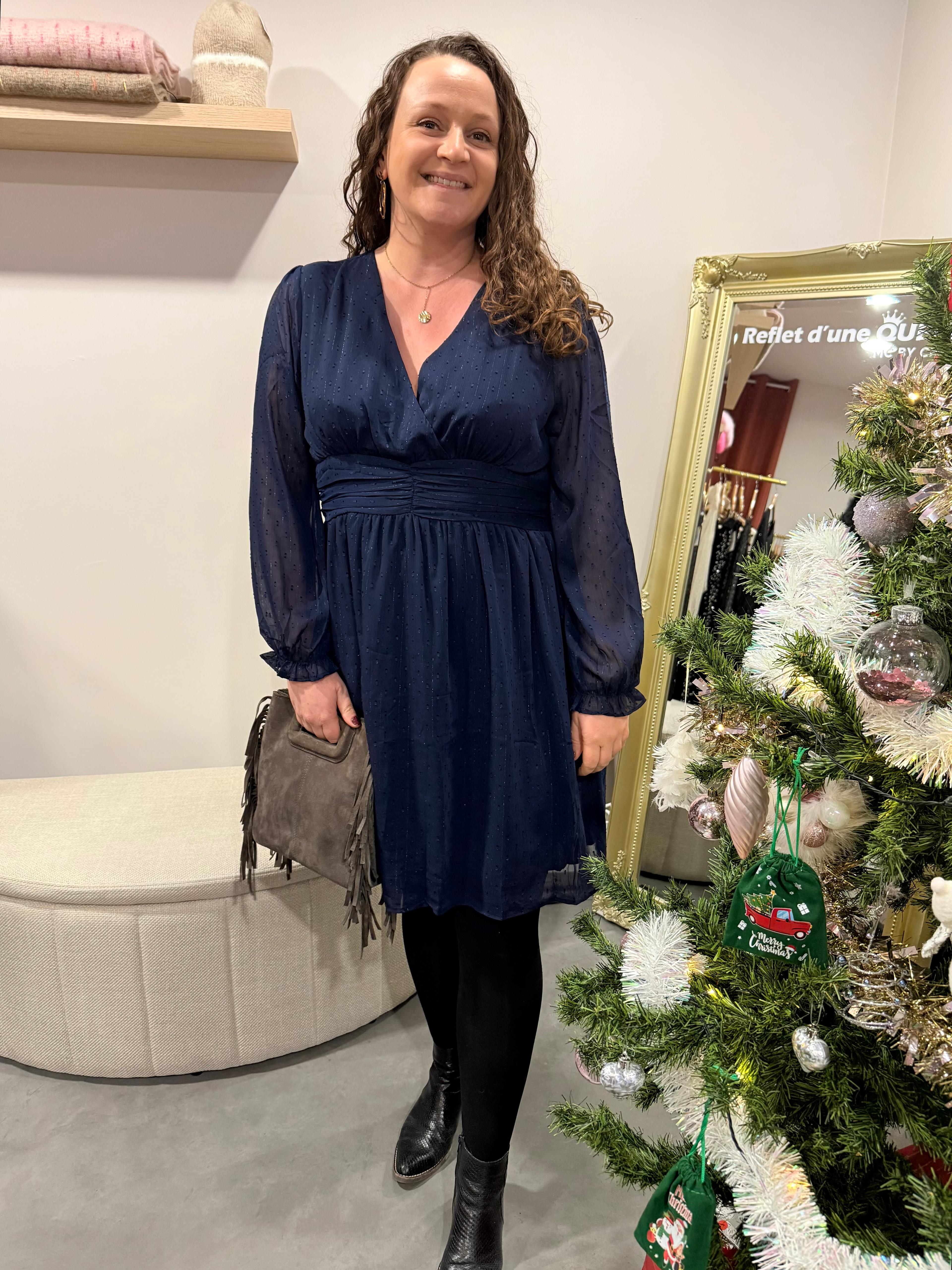 Son décolleté cache-cœur met joliment la poitrine en valeur tandis que la taille marquée souligne la silhouette. La coupe fluide assure un tombé élégant et un confort optimal, parfait pour les fêtes comme pour une belle occasion.