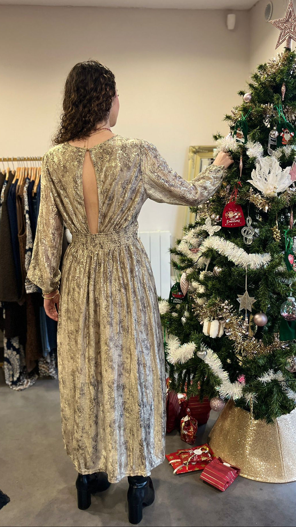 Robe longue brillante dos nu - Pulpeuse