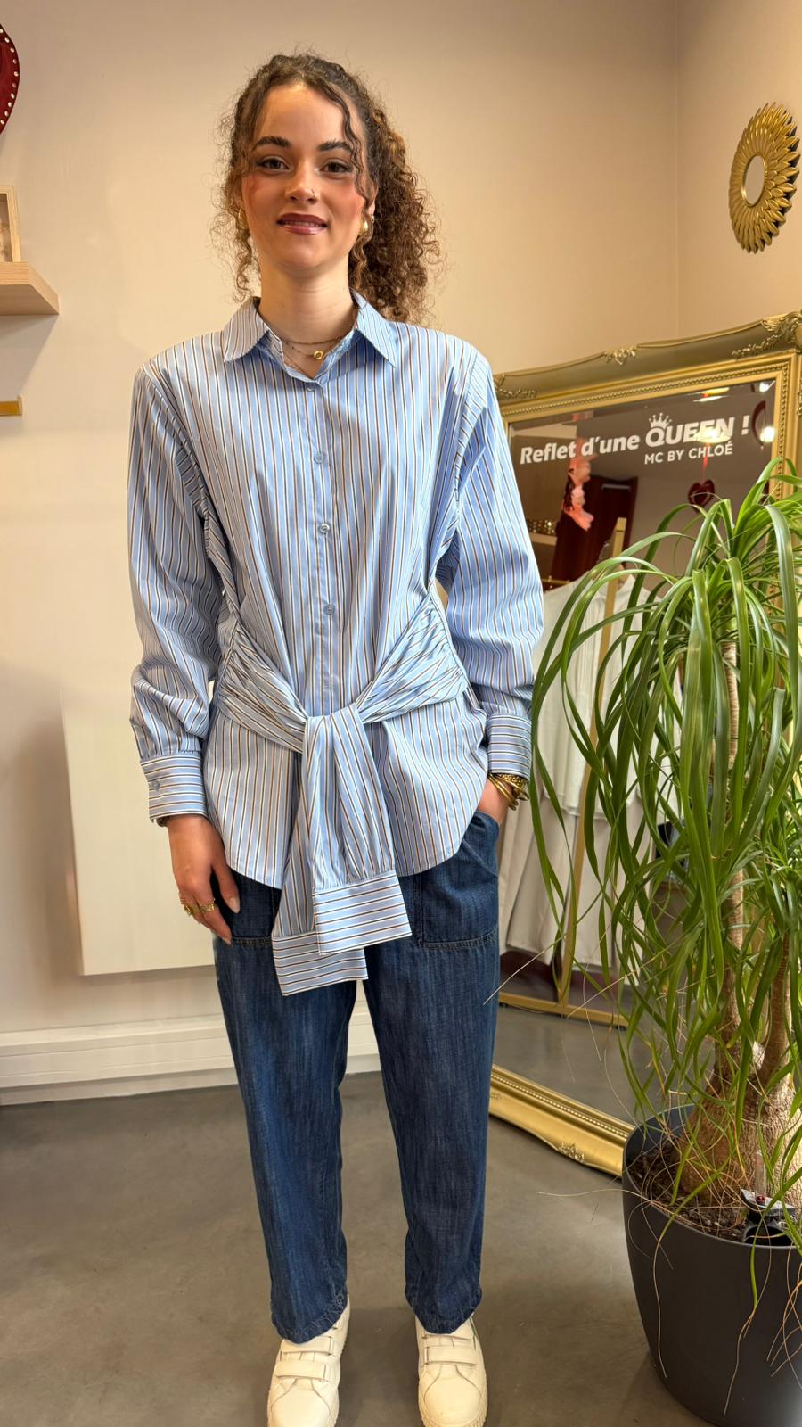 Redécouvrez l'indispensable chemise rayée avec ce modèle unique signé Johanna Paris. Alliant élégance traditionnelle et design contemporain, cette pièce se distingue par son ingénieux système de pans à nouer à la taille, permettant de structurer votre silhouette avec originalité. C'est la chemise parfaite pour celles qui souhaitent twister leur vestiaire "office" avec une note de modernité.