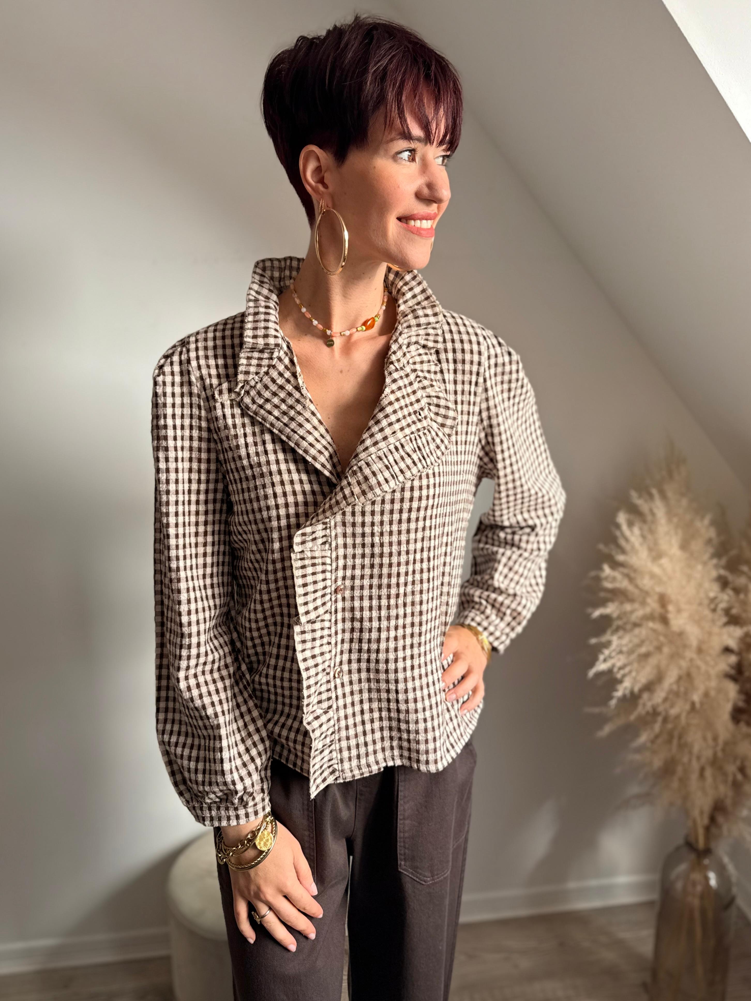 Adoptez l’élégance décontractée avec cette chemise à petits carreaux signée Johanna Paris.
