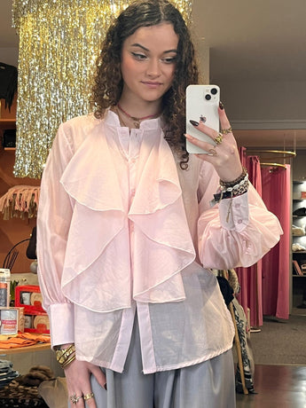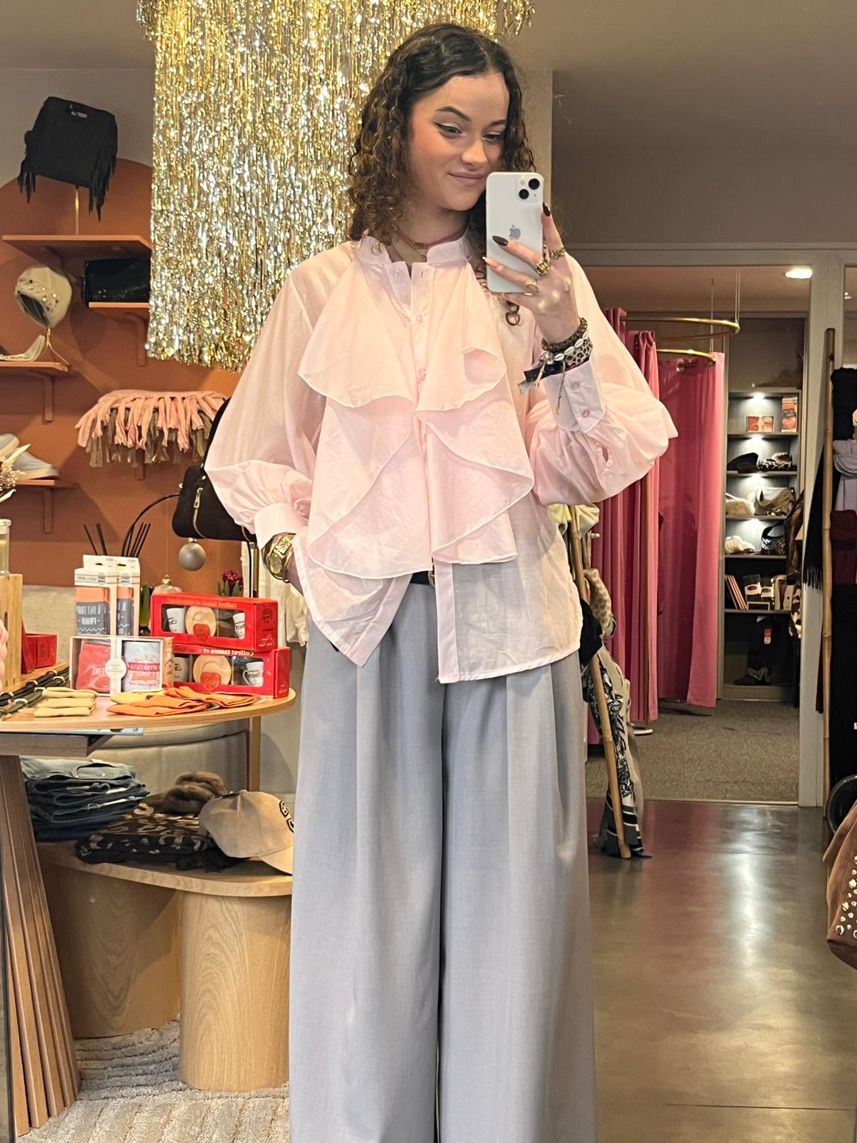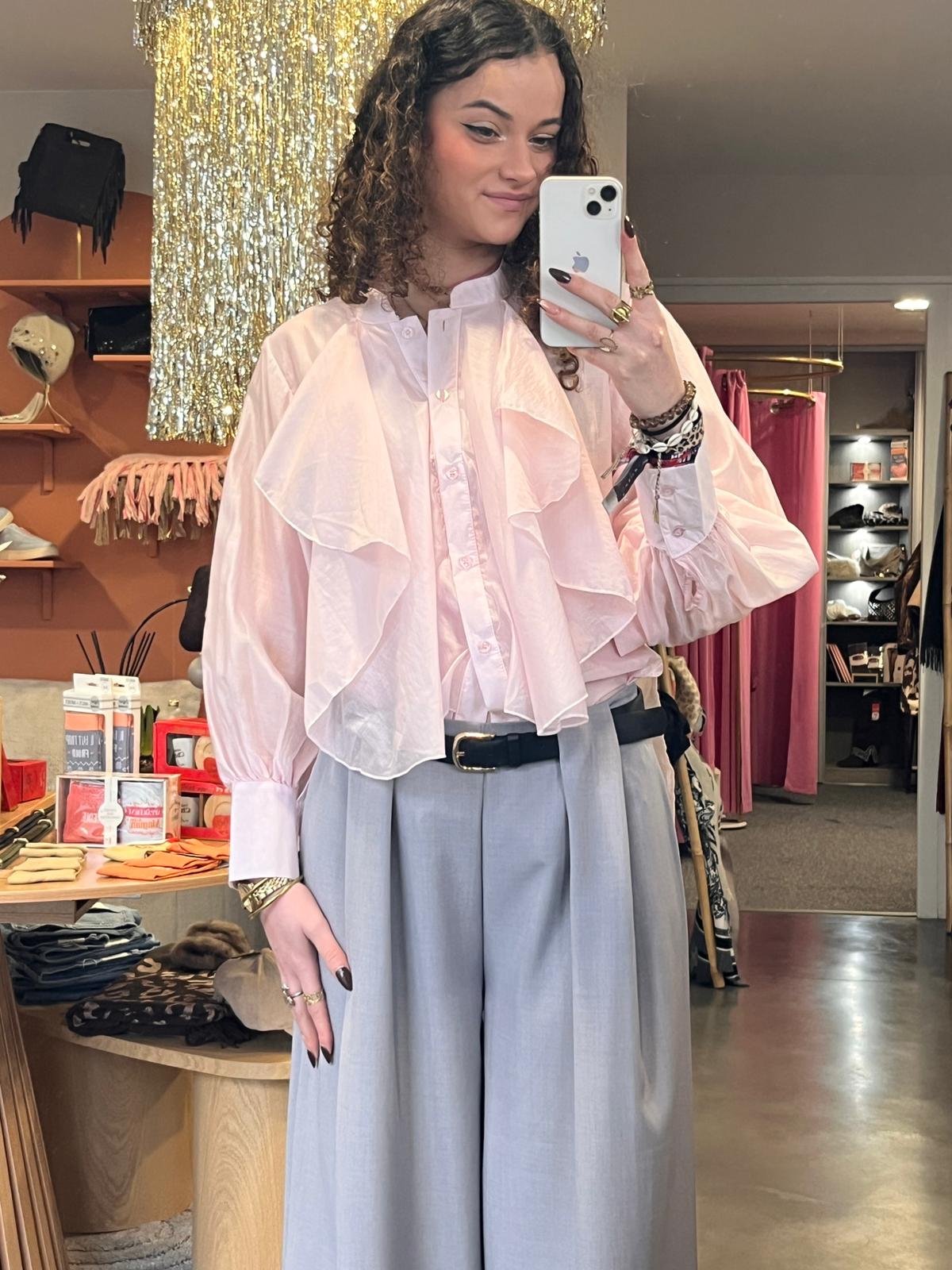 Chemise rose poudré à volant