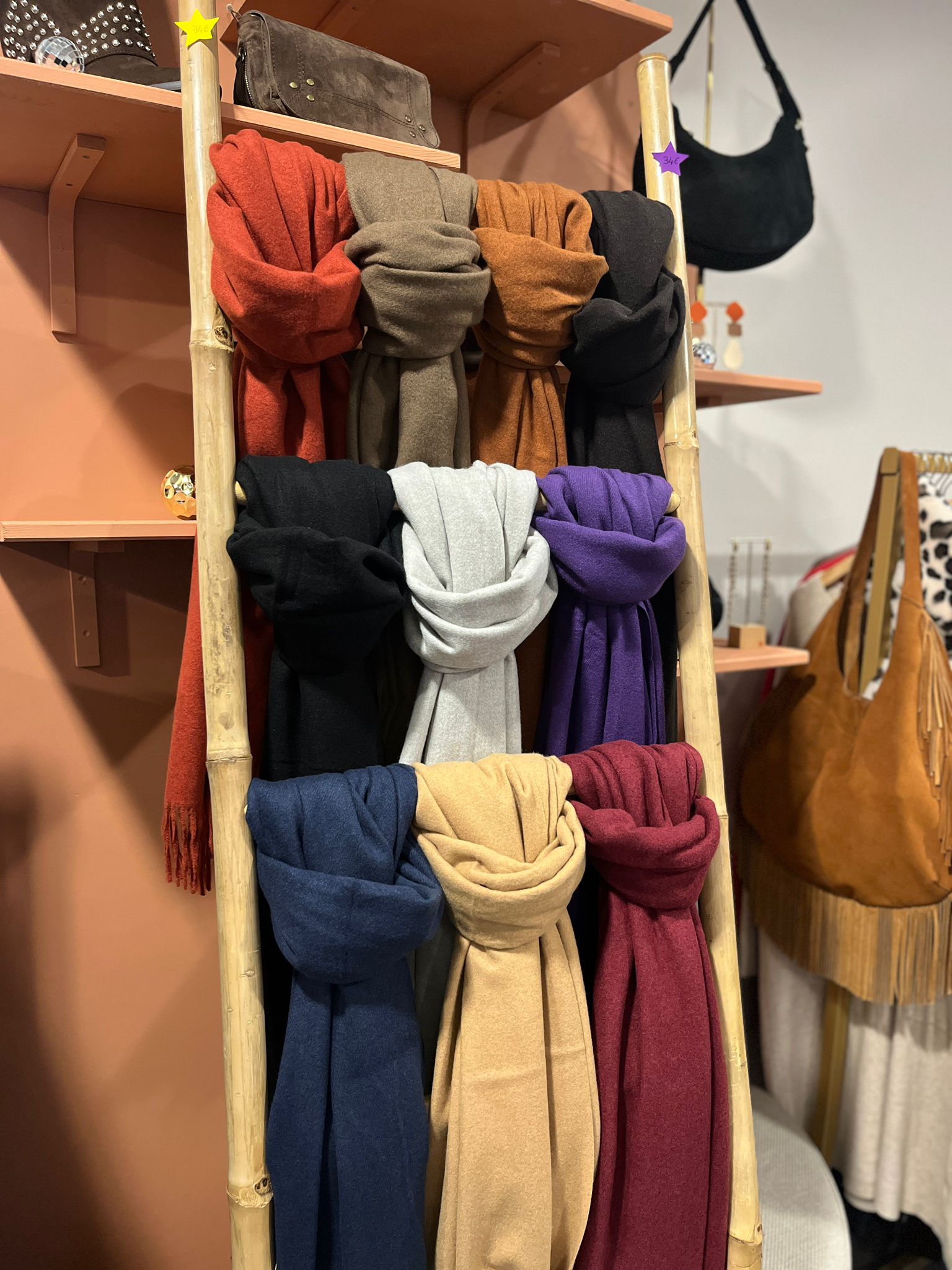 Véritable indispensable de la saison, cette écharpe unie séduit par sa douceur exceptionnelle et son élégance intemporelle.
