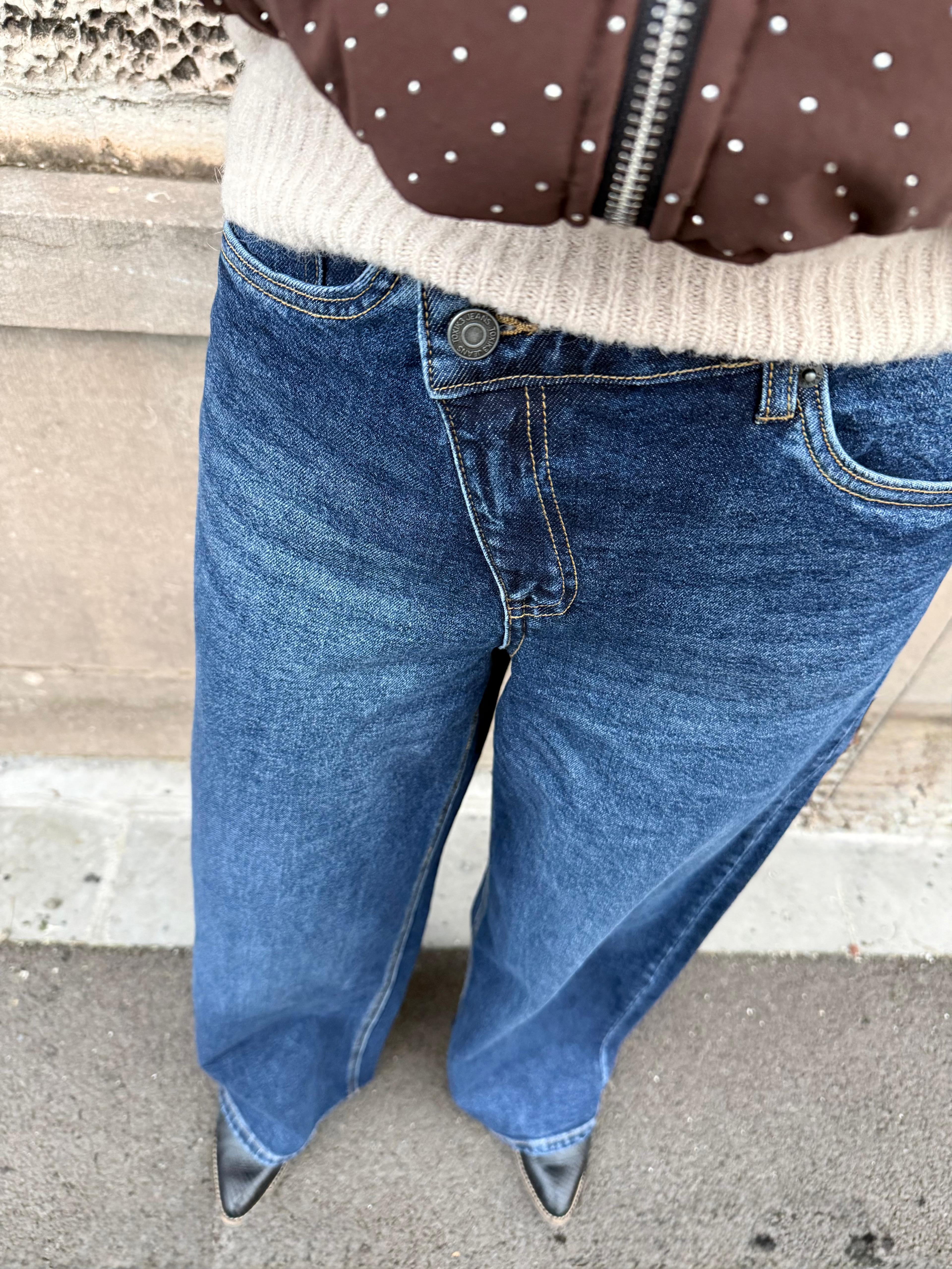Sa coupe droite et son délavage bleu profond en font une pièce facile à porter au quotidien : avec une chemise blanche pour un look chic, ou un pull moelleux pour un style plus casual.