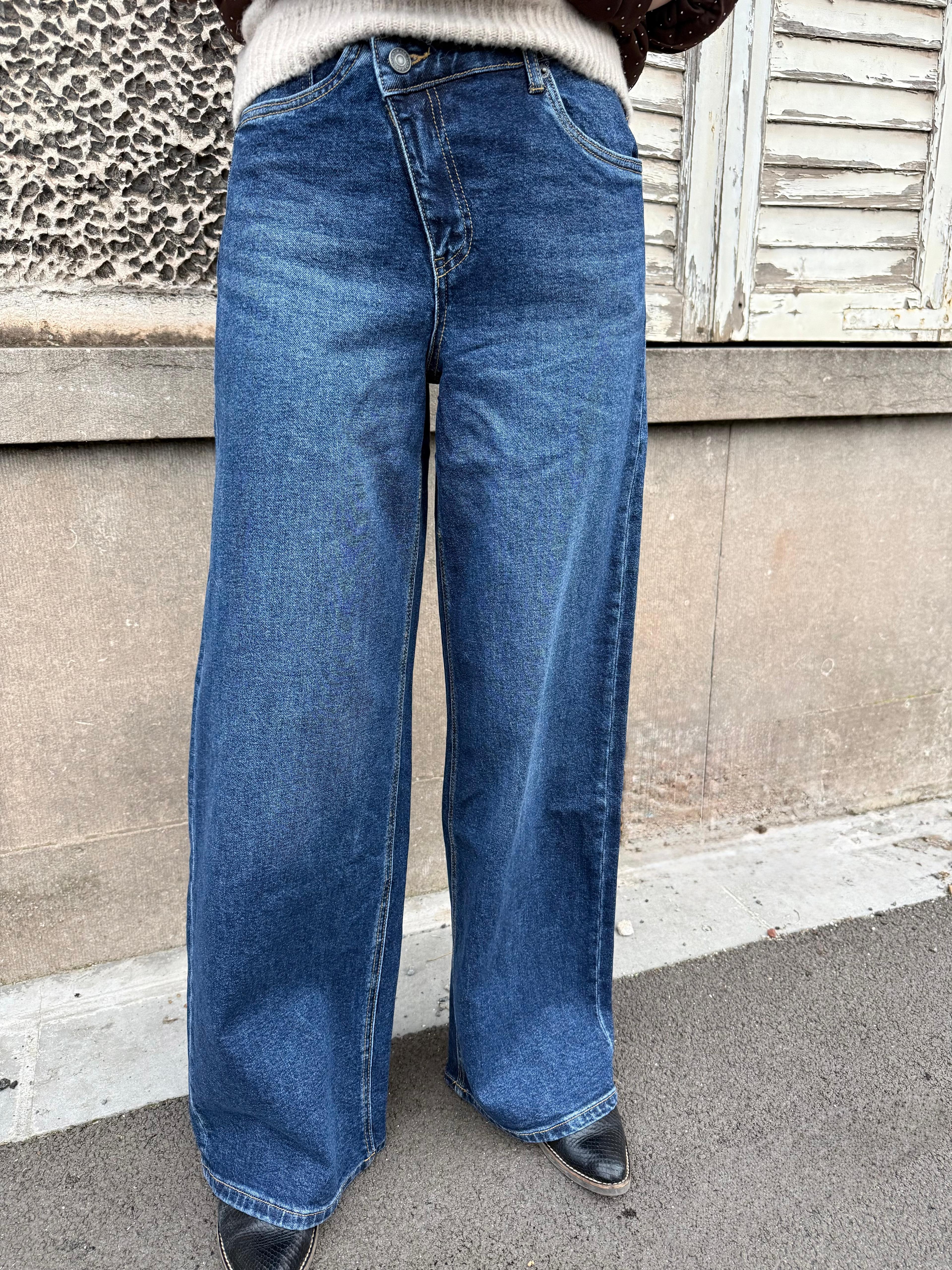 Jean droit large - fermeture décalée