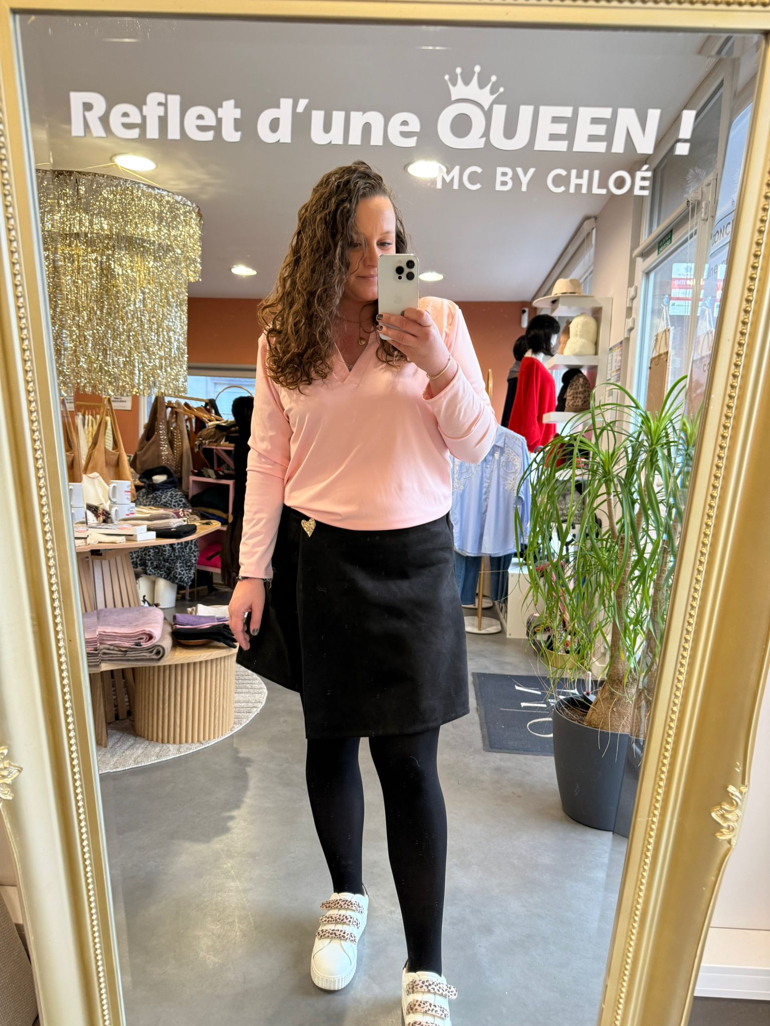Un indispensable chic et confortable, cette jupe-short noire en suédine allie élégance et praticité. Son effet jupe à l’avant et short intégré assurent une liberté de mouvement totale, tout en gardant une silhouette féminine.