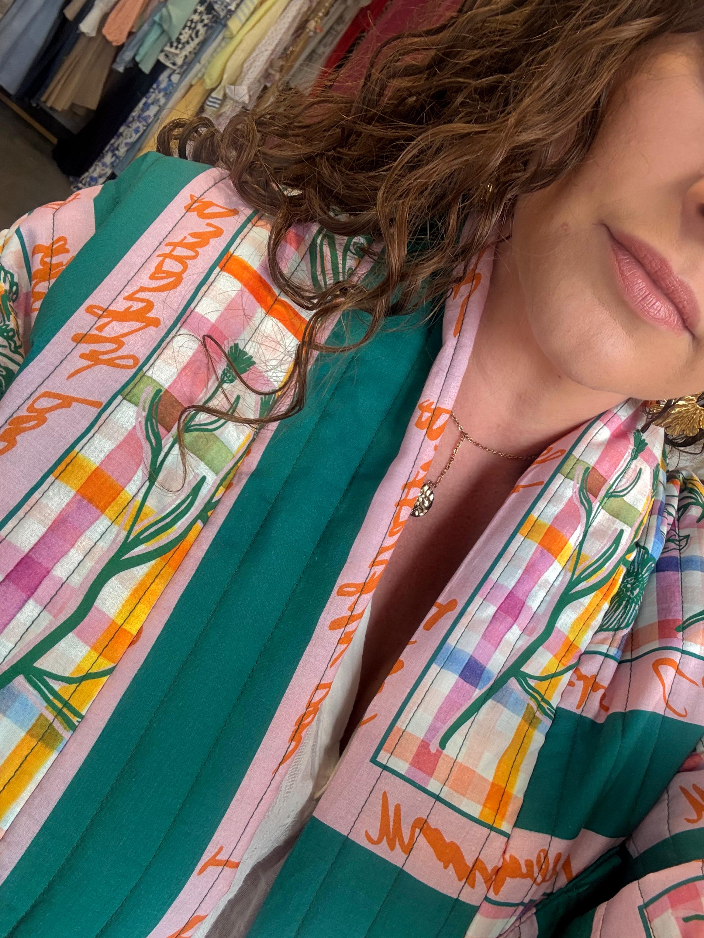 Ce kimono matelassé version été signé Johanna Paris est une pièce forte qui donne immédiatement du style à votre tenue.