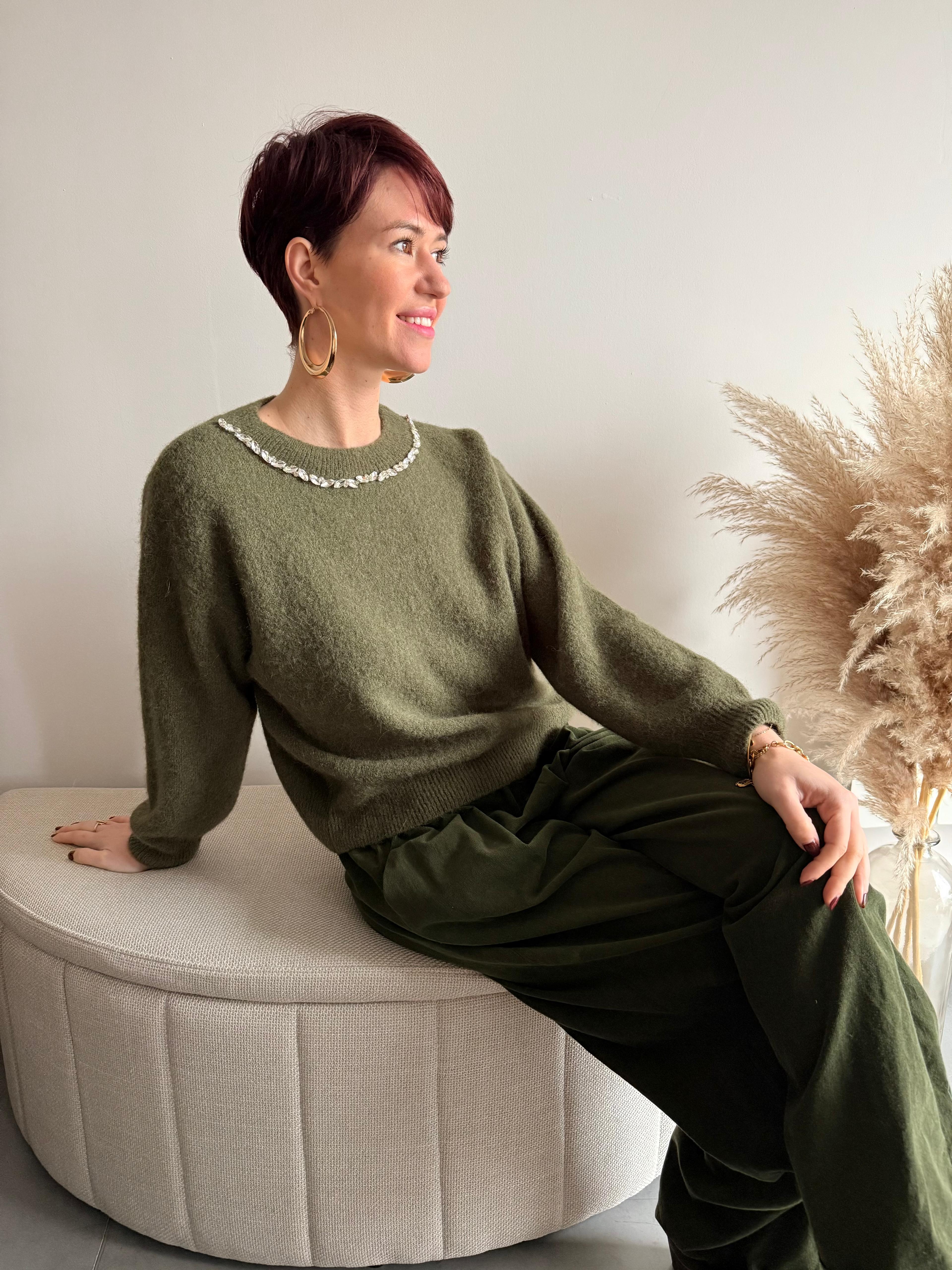 Pull bijoux kaki Johanna Paris