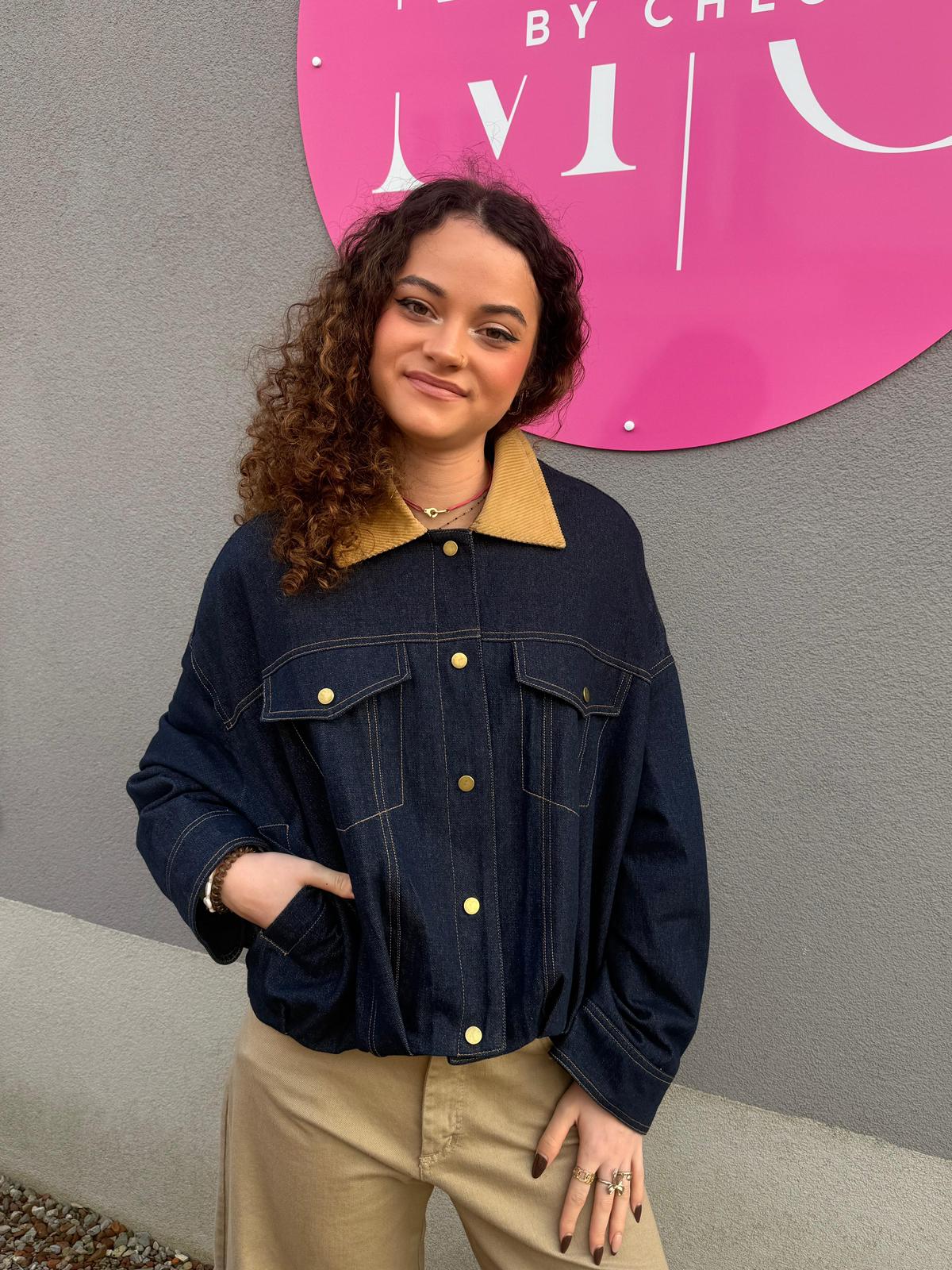Ce blouson signé Johanna Paris revisite l'indispensable veste en jean avec une touche de sophistication artisanale. Son denim brut, à la fois robuste et souple, est sublimé par un col en velours côtelé qui lui donne un charme vintage très actuel. Les surpiqûres apparentes et les boutons dorés viennent souligner sa coupe architecturale et ses finitions soignées.